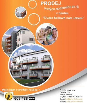 Město českých královen Dvůr Králové nad Labem, se rozkládá v malebném údolí horního toku řeky Labe, nedaleko hranic s Krkonošským národním parkem a chráněnou krajinnou oblastí Orlických hor Královehradeckého kraje . Jedná se o základní samosprávný celek, tvořený společenstvem 16 150 občanů s veřejnoprávní korporací. Historie města sahá až do třináctého století, tvořeného tehdy románským kostelem a středověkou osadou. Obslužnost města je zajištěna vlastní samostatnou působností a přilehlými okolními městy jako je např. Trutnov, Vrchlabí, Jaroměř a nedaleký Hradec Králové . Vlastní město disponuje nemocnicí, základními a středními školami, koupalištěm, muzeem, divadlem, parkem, kulturními památkami, sportovními areály, zimním stadionem, aeroklubem a dále je proslaveno vyhlášeným ZOO parkem a nedalekým zámeckým skvostem Kuks. Také hustá síť cyklotras může nabídnout nespornou atraktivitu podporující projekt výstavby bytových domů v klidné a historické části města. Celkově se jedná o atraktivní a strategickou lokalitu pro bydlení, neboť se na jedné straně nabízí možné výhody horských areálů a na straně druhé Hradec Králové a Jičín s rozvíjejícími se průmyslovými centry. Více informací naleznete na internetových stránkách města, nebo v informačním centru Dvora Králové n. Labem.
